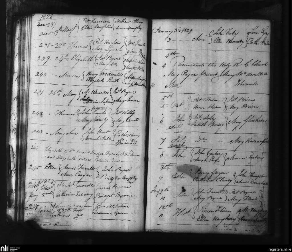 Carlow; County of Carlow, Kildare; Diocese of Kildare and Leighlin. Baptisms, Dec. 1828 to Jan. 1829