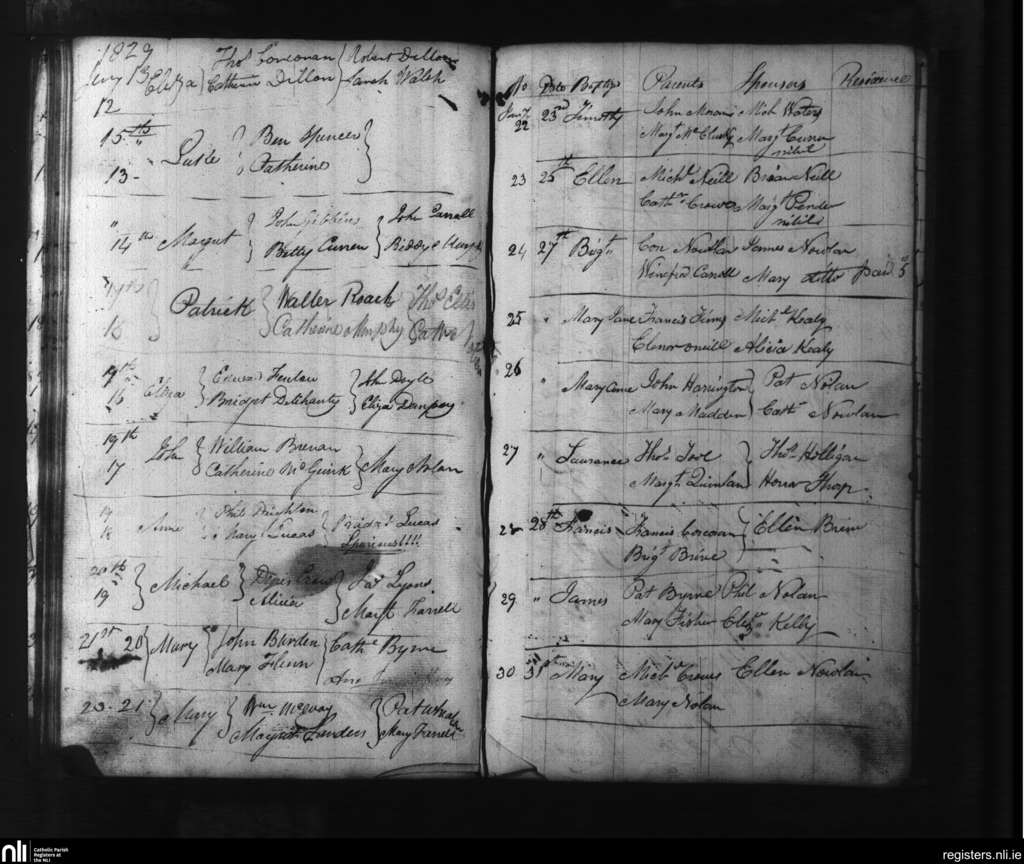Carlow; County of Carlow, Kildare; Diocese of Kildare and Leighlin. Baptisms, Jan. 1829