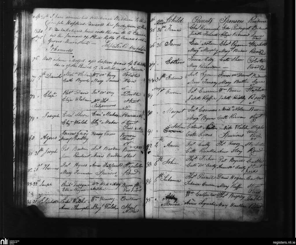 Carlow; County of Carlow, Kildare; Diocese of Kildare and Leighlin. Baptisms, Apr. 1830 to May 1830