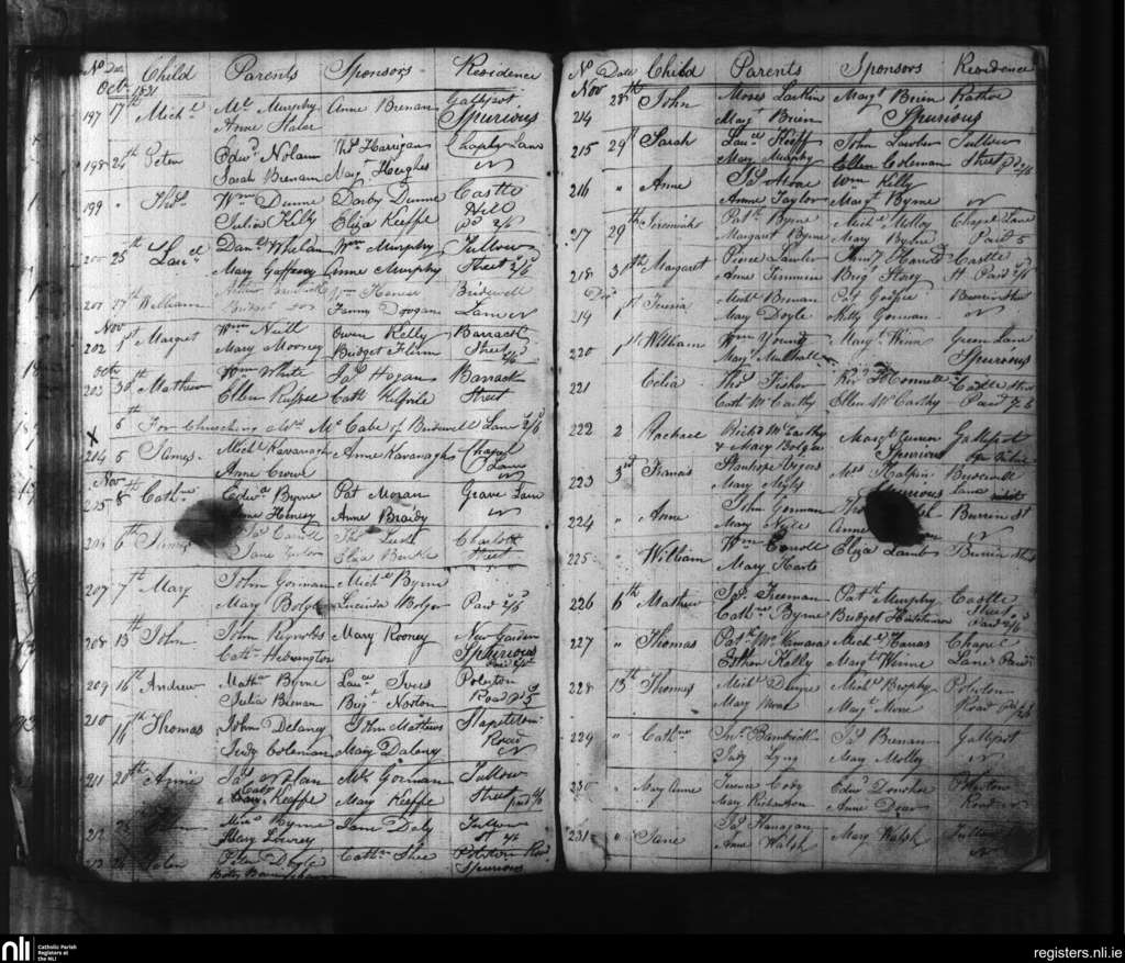Carlow; County of Carlow, Kildare; Diocese of Kildare and Leighlin. Baptisms, Oct. 1831 to Dec. 1831