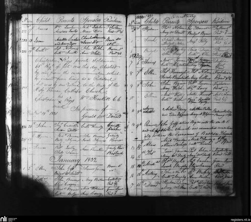 Carlow; County of Carlow, Kildare; Diocese of Kildare and Leighlin. Baptisms, Dec. 1831 to Jan. 1832