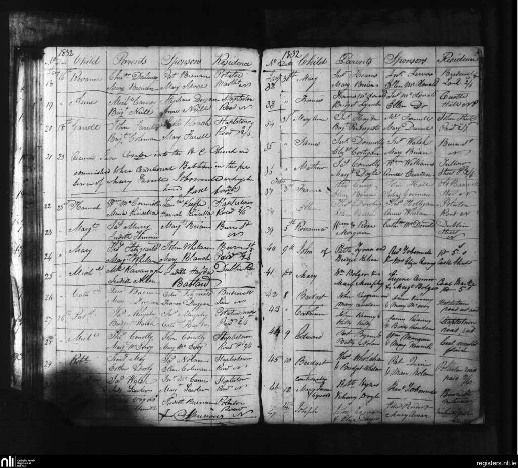Carlow; County of Carlow, Kildare; Diocese of Kildare and Leighlin. Baptisms, Jan. 1832 to Feb. 1832