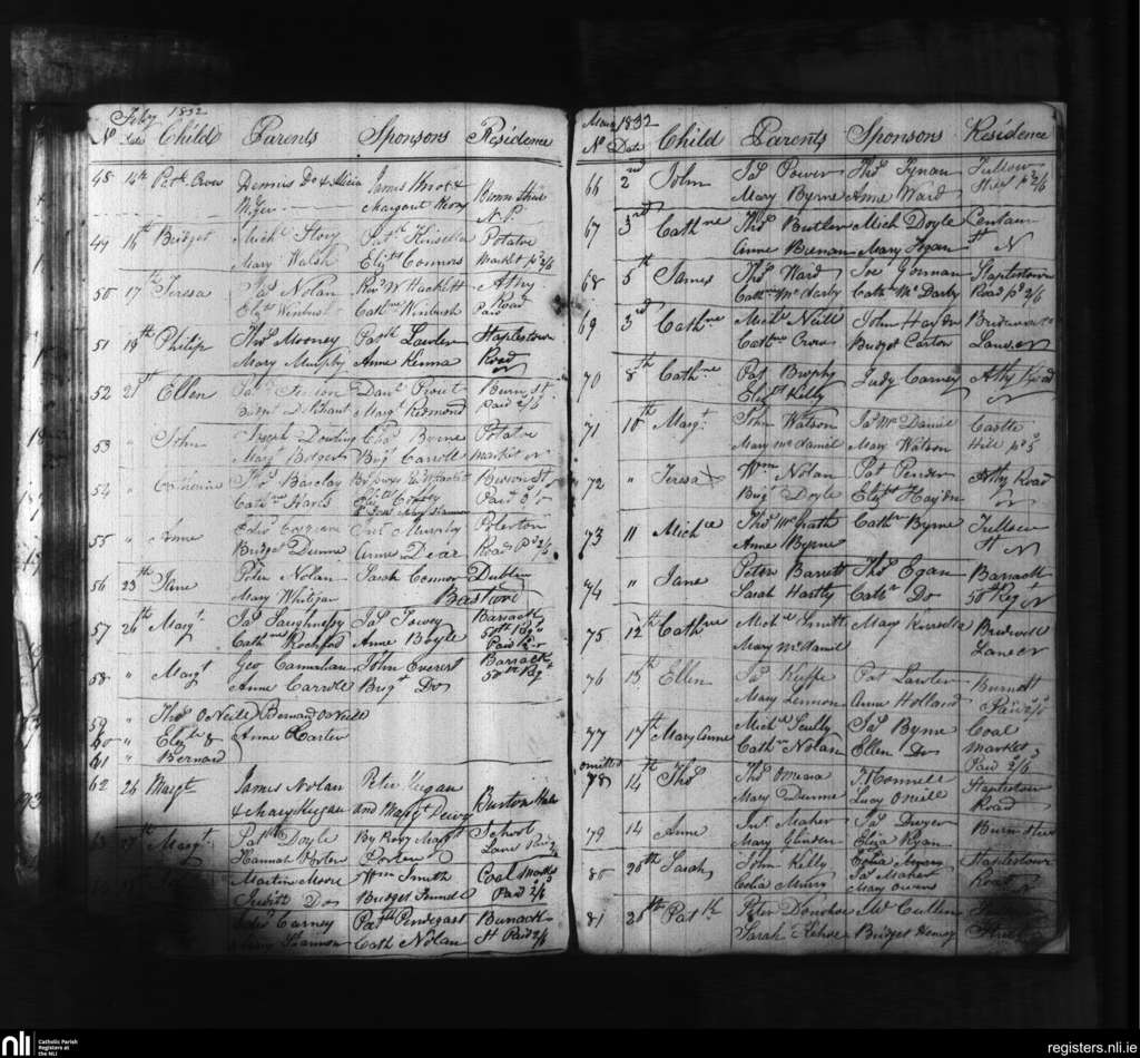 Carlow; County of Carlow, Kildare; Diocese of Kildare and Leighlin. Baptisms, Feb. 1832 to Mar. 1832