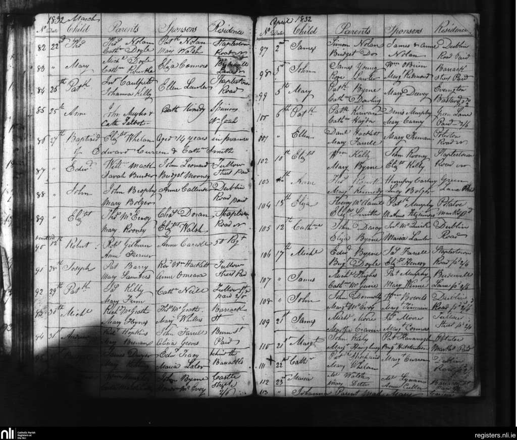 Carlow; County of Carlow, Kildare; Diocese of Kildare and Leighlin. Baptisms, Mar. 1832 to Apr. 1832