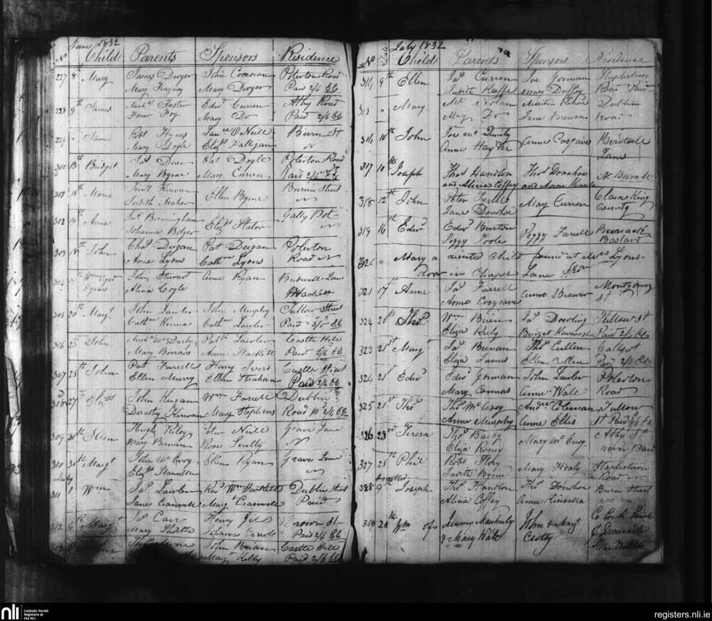 Carlow; County of Carlow, Kildare; Diocese of Kildare and Leighlin. Baptisms, June 1832 to Aug. 1832
