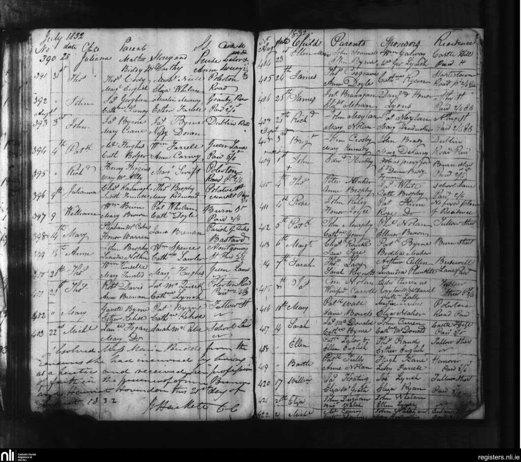 Carlow; County of Carlow, Kildare; Diocese of Kildare and Leighlin. Baptisms, July 1832 to Sep. 1832
