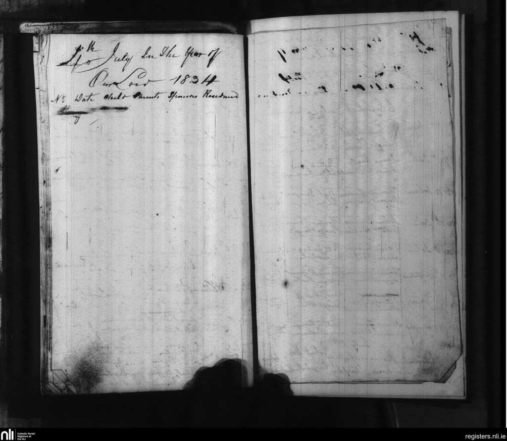 Carlow; County of Carlow, Kildare; Diocese of Kildare and Leighlin. Baptisms, July 1834