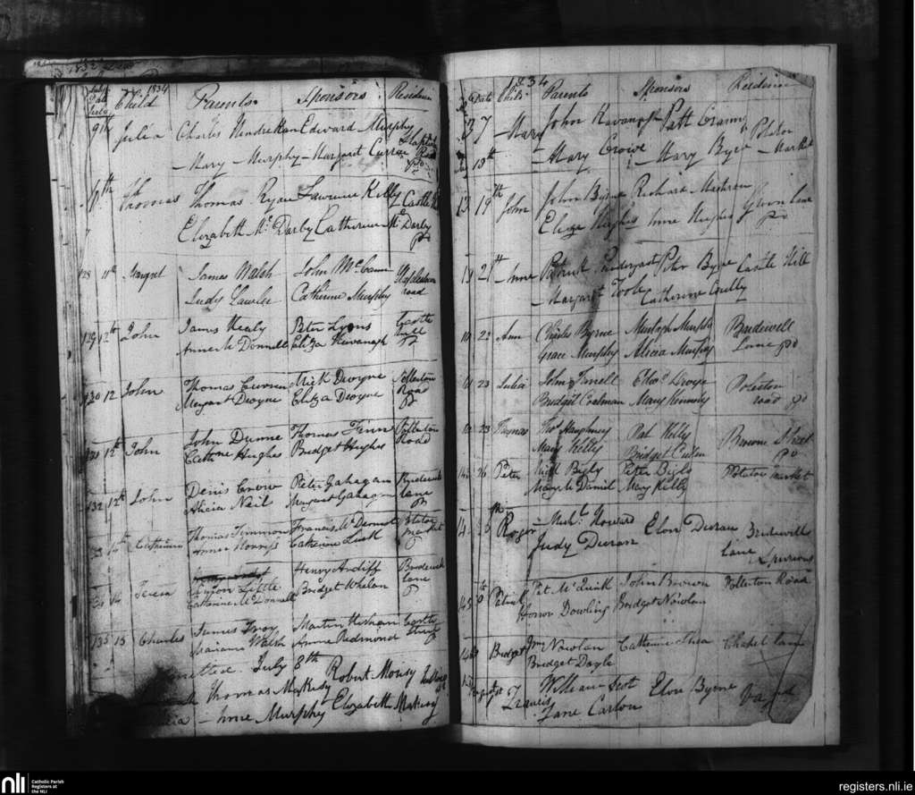 Carlow; County of Carlow, Kildare; Diocese of Kildare and Leighlin. Baptisms, July 1834 to Aug. 1834