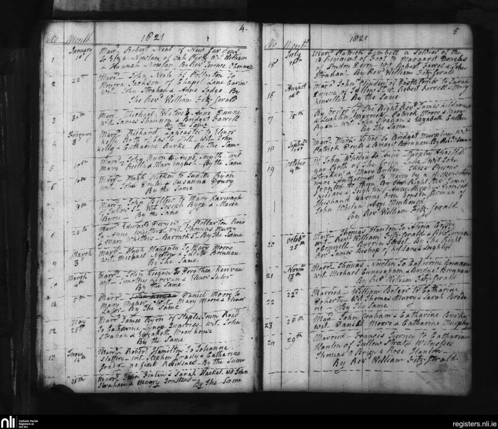 Carlow; County of Carlow, Kildare; Diocese of Kildare and Leighlin. Marriages, Jan. 1821 to Nov. 1821