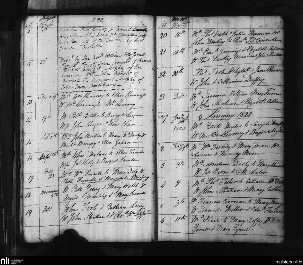 Carlow; County of Carlow, Kildare; Diocese of Kildare and Leighlin. Marriages, July 1822 to Feb. 1823