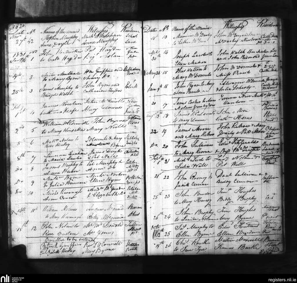 Carlow; County of Carlow, Kildare; Diocese of Kildare and Leighlin. Marriages, Nov. 1830 to Oct. 1831