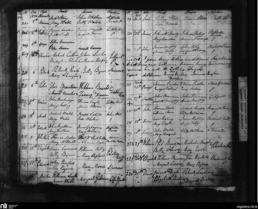 Carlow; County of Carlow, Kildare; Diocese of Kildare and Leighlin. Baptisms, Nov. 1834 to Dec. 1834