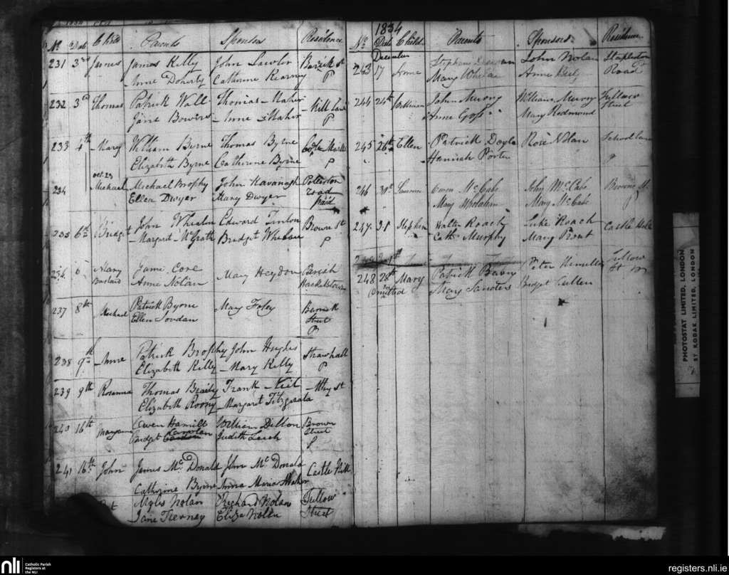 Carlow; County of Carlow, Kildare; Diocese of Kildare and Leighlin. Baptisms, Dec. 1834