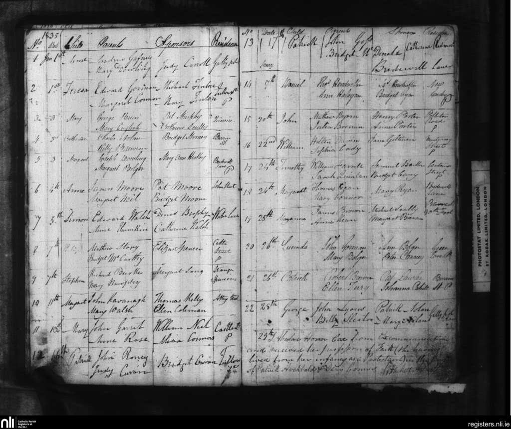 Carlow; County of Carlow, Kildare; Diocese of Kildare and Leighlin. Baptisms, Jan. 1835