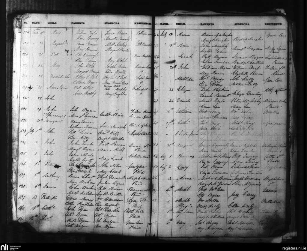 Carlow; County of Kildare, Carlow; Diocese of Kildare and Leighlin. Baptisms, June 1845 to Aug. 1845