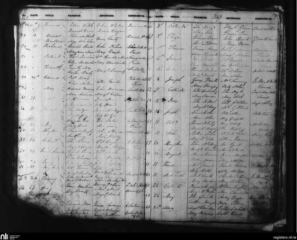 Carlow; County of Kildare, Carlow; Diocese of Kildare and Leighlin. Baptisms, Feb. 1847 to Mar. 1847