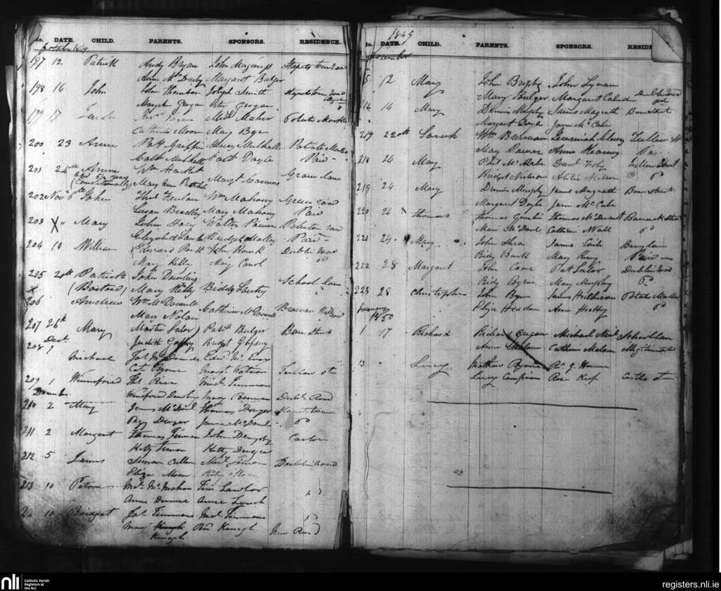 Carlow; County of Kildare, Carlow; Diocese of Kildare and Leighlin. Baptisms, Oct. 1849 to Jan. 1850