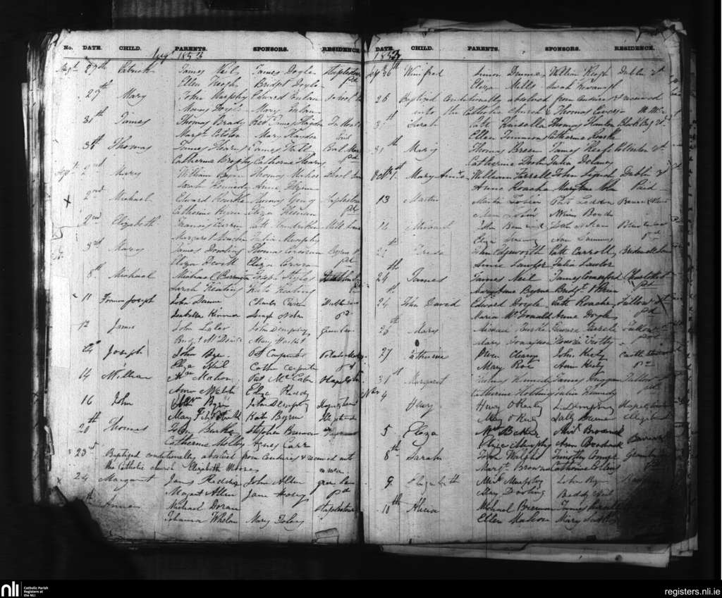 Carlow; Contae Kildare, Carlow; Deoise Kildare and Leighlin. Baptisms, Lún. 1853 go dtí an Samh. 1853