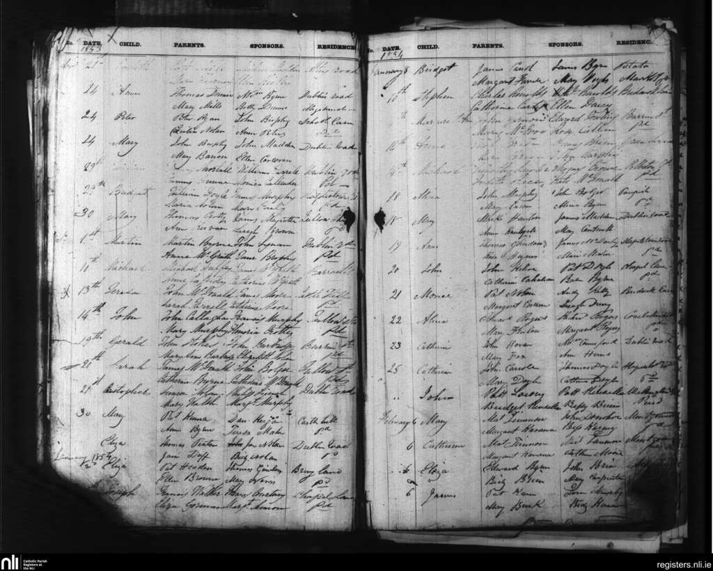 Carlow; County of Kildare, Carlow; Diocese of Kildare and Leighlin. Baptisms, Nov. 1853 to Feb. 1854