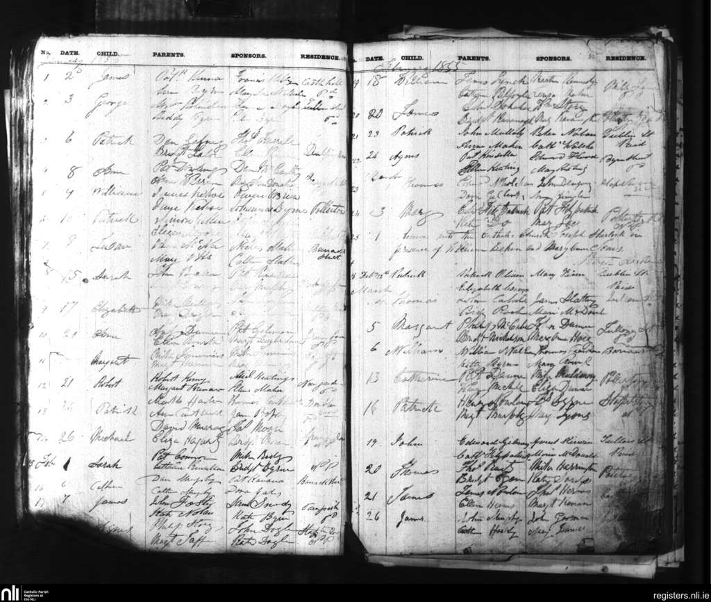 Carlow; County of Kildare, Carlow; Diocese of Kildare and Leighlin. Baptisms, Jan. 1855 to Mar. 1855