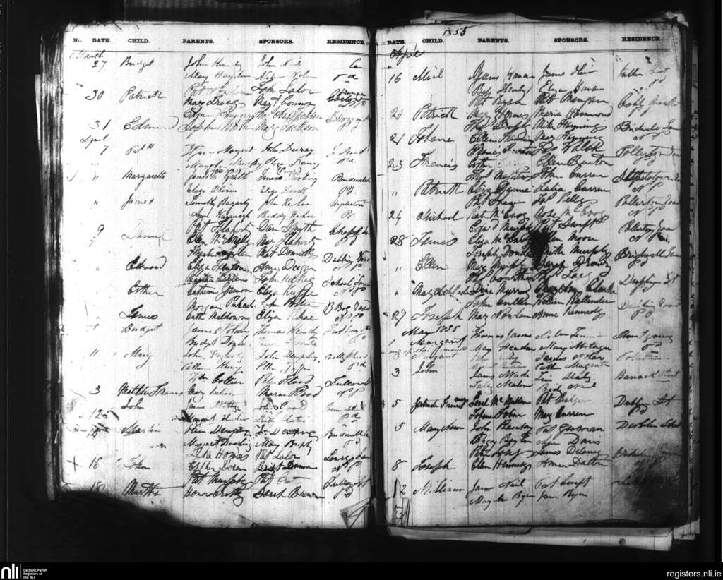 Carlow; County of Kildare, Carlow; Diocese of Kildare and Leighlin. Baptisms, Mar. 1855 to May 1855