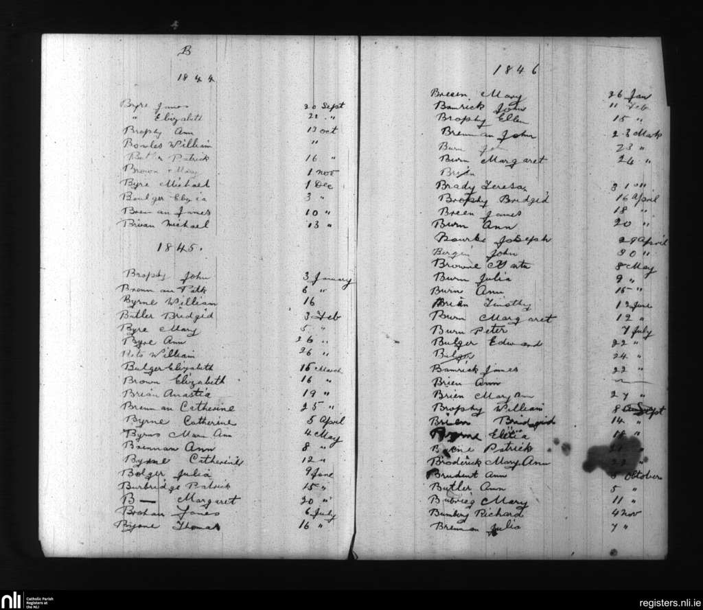 Carlow; County of Kildare, Carlow; Diocese of Kildare and Leighlin. Baptisms, Sep. 1844 to Nov. 1846