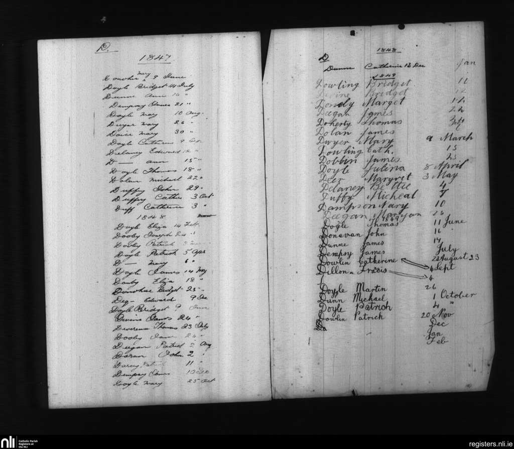 Carlow; County of Kildare, Carlow; Diocese of Kildare and Leighlin. Baptisms, June 1847 to Feb. 1850