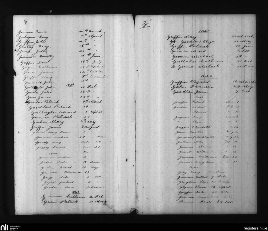 Carlow; County of Kildare, Carlow; Diocese of Kildare and Leighlin. Baptisms, Mar. 1838 to Nov. 1844