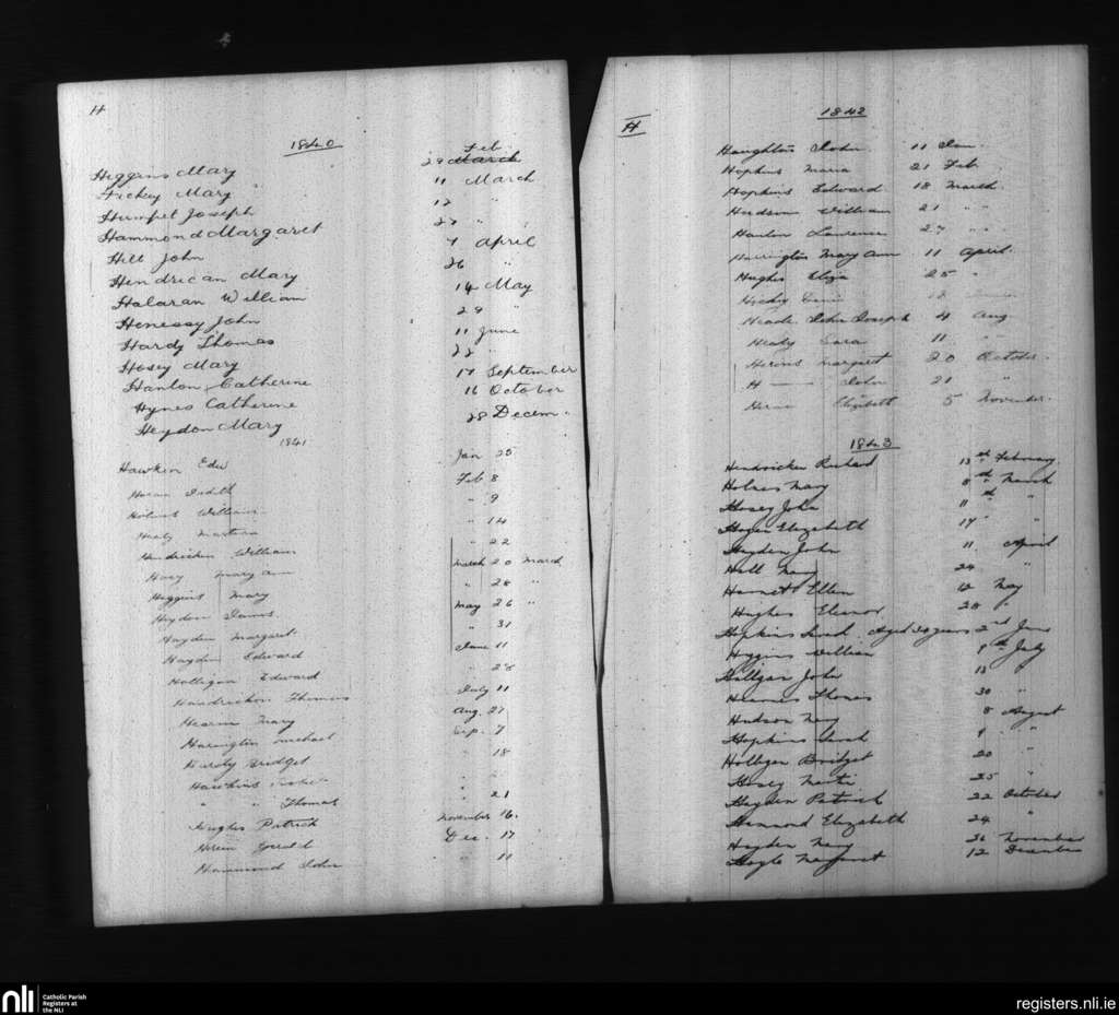 Carlow; County of Kildare, Carlow; Diocese of Kildare and Leighlin. Baptisms, Feb. 1840 to Dec. 1843