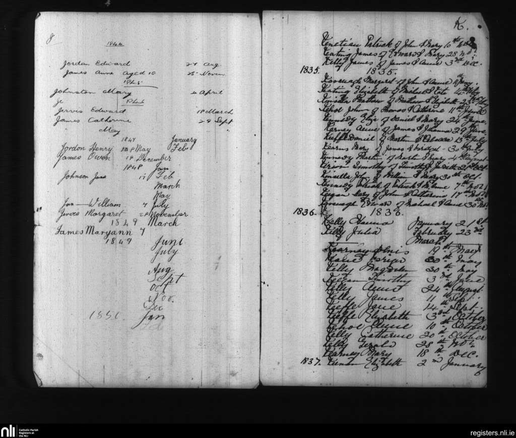 Carlow; County of Kildare, Carlow; Diocese of Kildare and Leighlin. Baptisms, Nov. 1834 to Feb. 1850