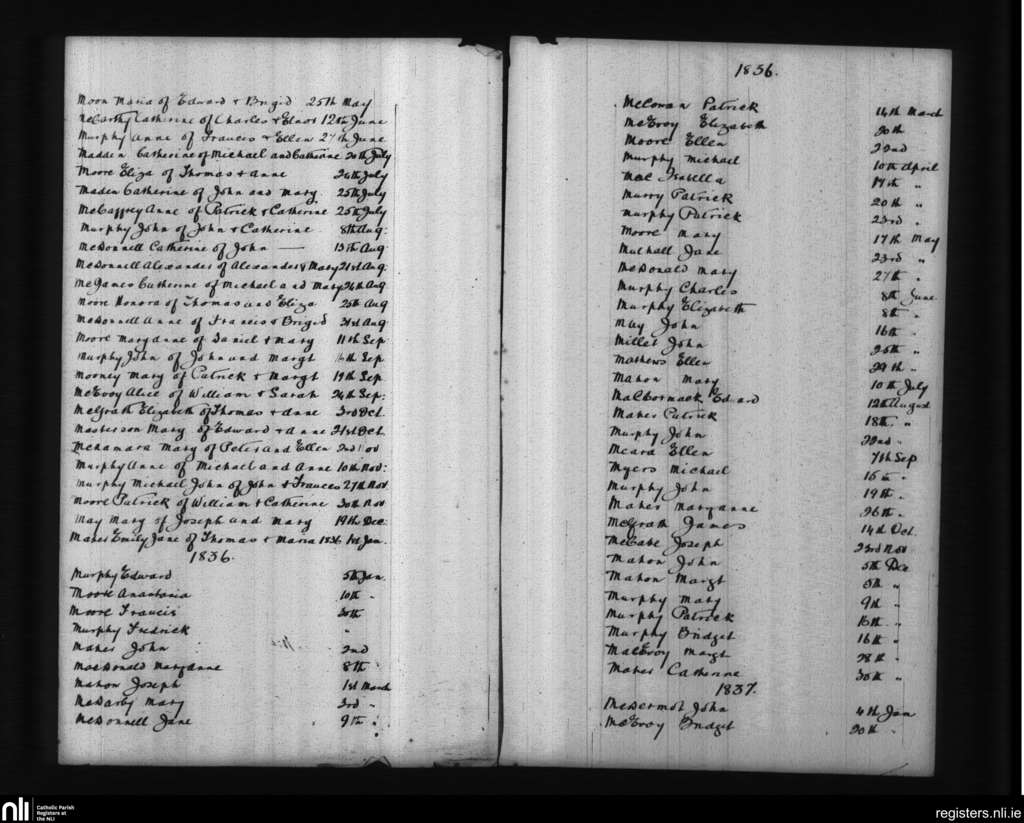 Carlow; County of Kildare, Carlow; Diocese of Kildare and Leighlin. Baptisms, May 1835 to Jan. 1837
