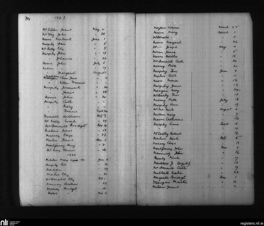 Carlow; County of Kildare, Carlow; Diocese of Kildare and Leighlin. Baptisms, May 1842 to Dec. 1843