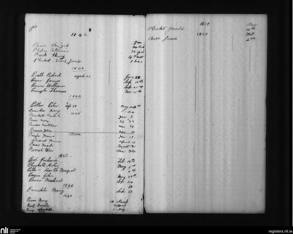 Carlow; County of Kildare, Carlow; Diocese of Kildare and Leighlin. Baptisms, Mar. 1842 to Feb. 1850