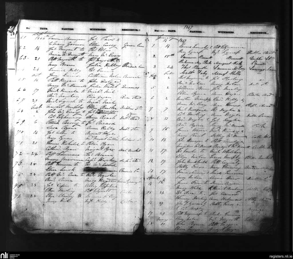 Carlow; County of Carlow, Kildare; Diocese of Kildare and Leighlin. Marriages, Sep. 1846 to May 1847