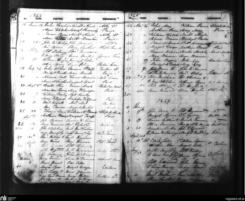 Carlow; County of Carlow, Kildare; Diocese of Kildare and Leighlin. Marriages, June 1848 to May 1849