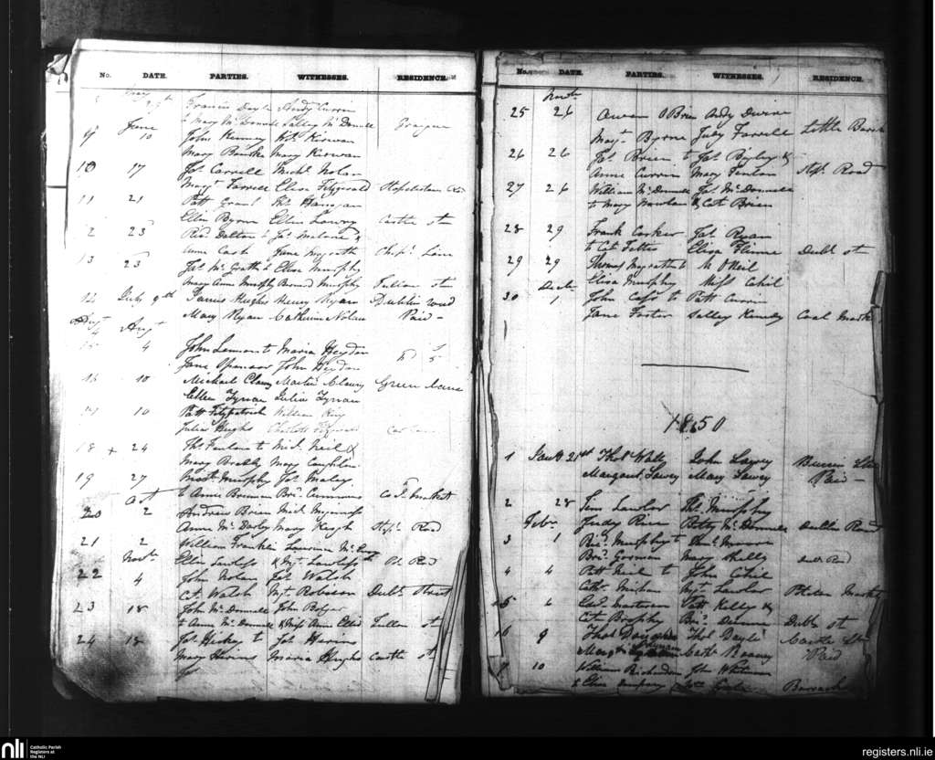 Carlow; County of Carlow, Kildare; Diocese of Kildare and Leighlin. Marriages, May 1849 to Feb. 1850