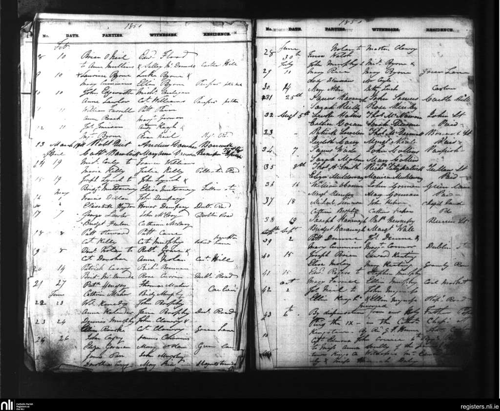 Carlow; County of Carlow, Kildare; Diocese of Kildare and Leighlin. Marriages, Feb. 1850 to Oct. 1850