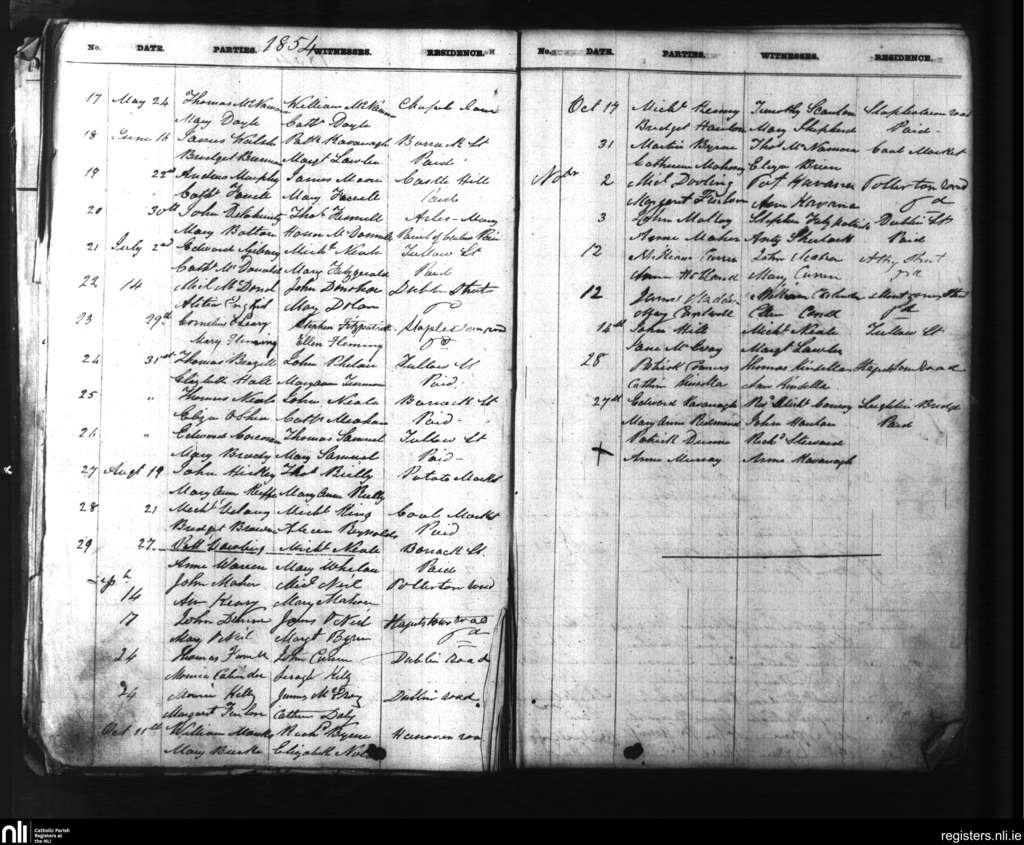 Carlow; County of Carlow, Kildare; Diocese of Kildare and Leighlin. Marriages, May 1854 to Nov. 1854