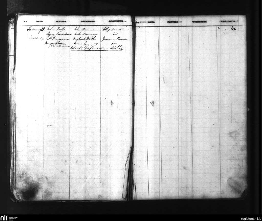Carlow; County of Carlow, Kildare; Diocese of Kildare and Leighlin. Marriages, Jan. 1856 to Apr. 1856