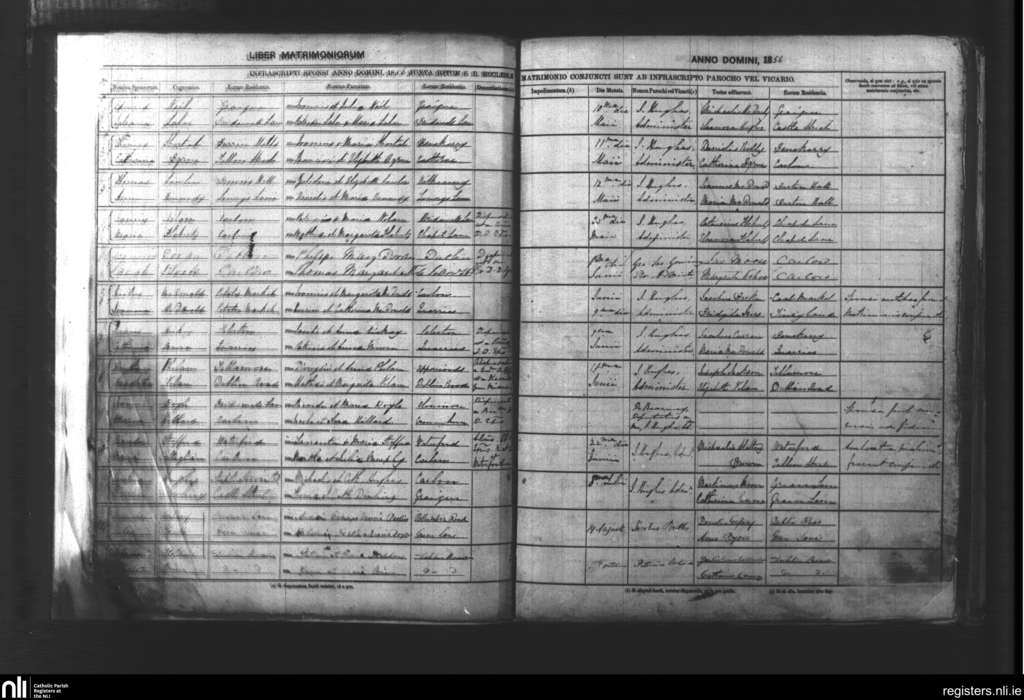 Carlow; County of Carlow, Kildare; Diocese of Kildare and Leighlin. Marriages, May 1856 to Oct. 1856