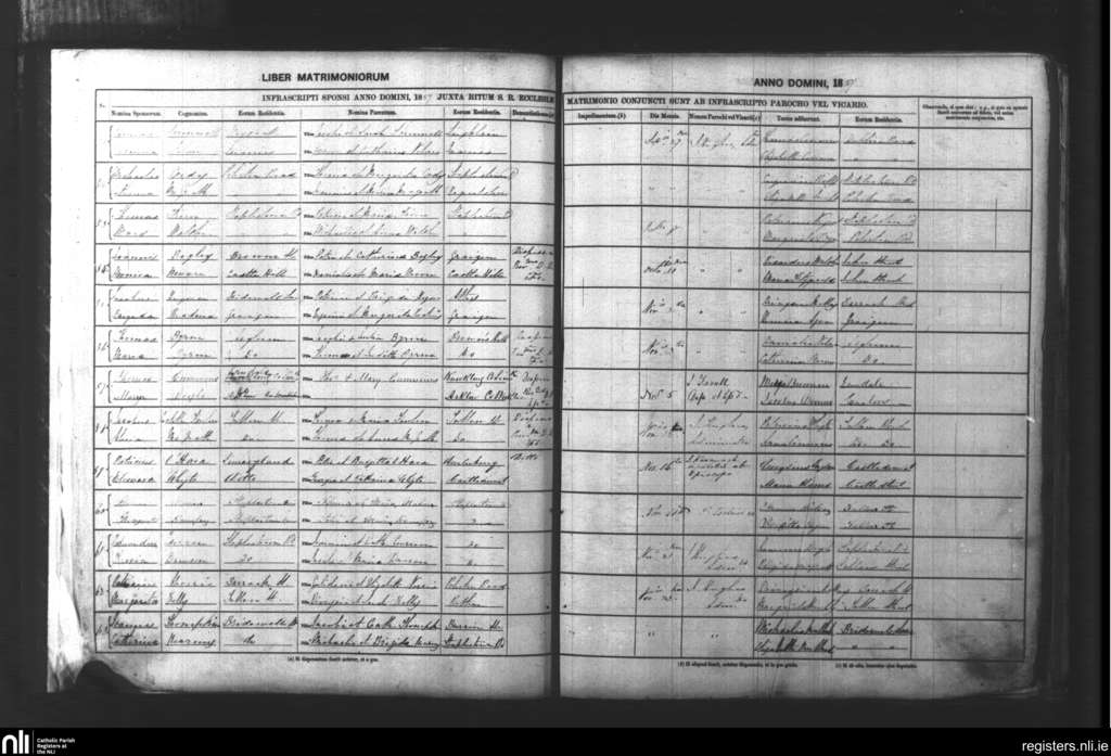 Carlow; County of Carlow, Kildare; Diocese of Kildare and Leighlin. Marriages, Sep. 1857 to Nov. 1857