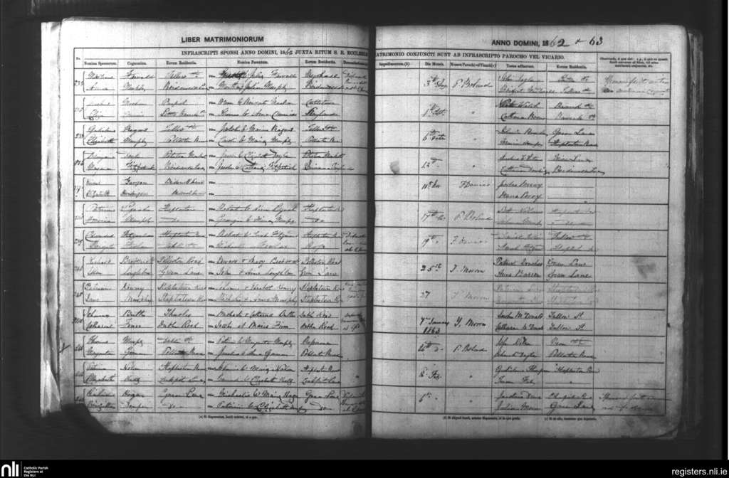 Carlow; County of Carlow, Kildare; Diocese of Kildare and Leighlin. Marriages, Aug. 1862 to Feb. 1863