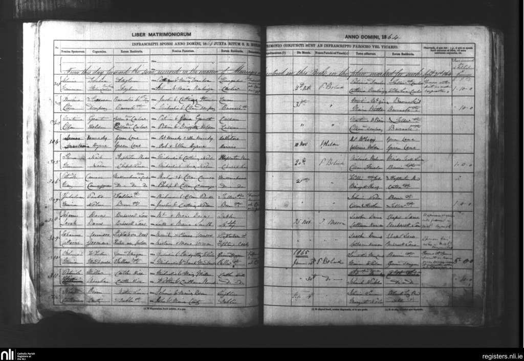 Carlow; County of Carlow, Kildare; Diocese of Kildare and Leighlin. Marriages, Oct. 1864 to Feb. 1865
