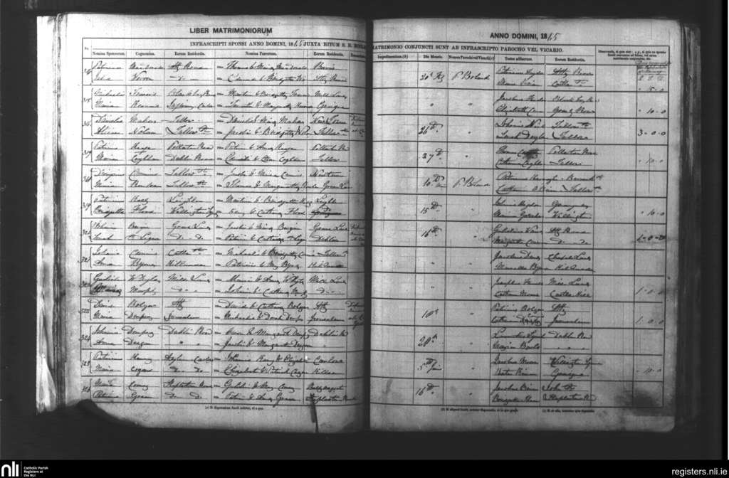 Carlow; County of Carlow, Kildare; Diocese of Kildare and Leighlin. Marriages, Feb. 1865 to June 1865