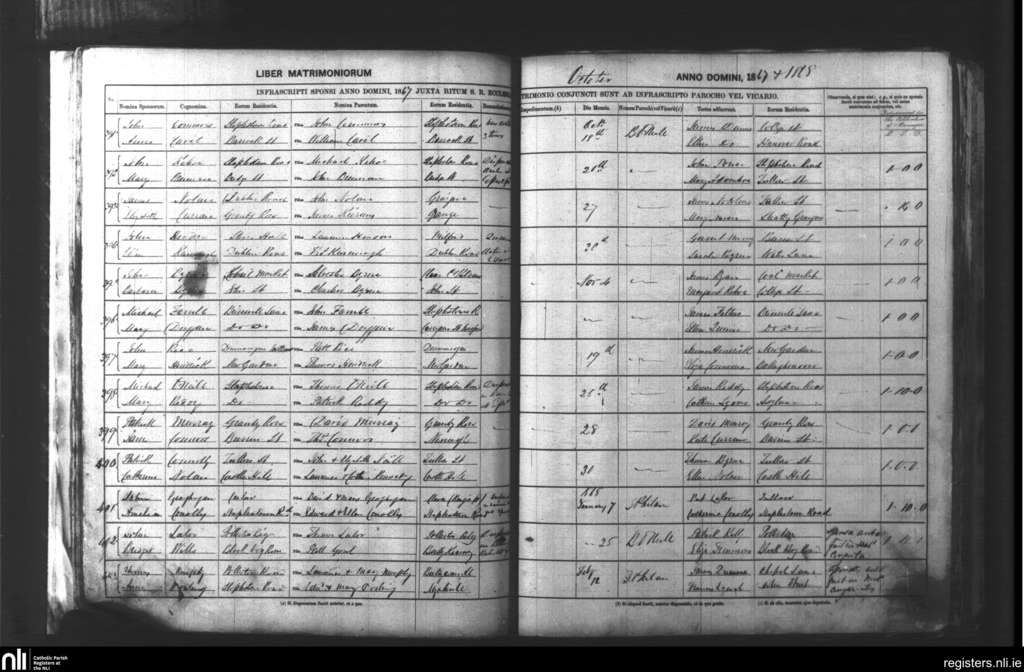 Carlow; County of Carlow, Kildare; Diocese of Kildare and Leighlin. Marriages, Oct. 1867 to Feb. 1868