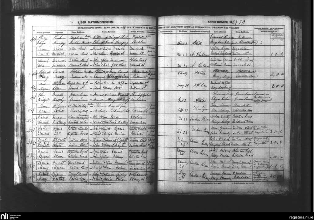Carlow; County of Carlow, Kildare; Diocese of Kildare and Leighlin. Marriages, Nov. 1869 to May 1870