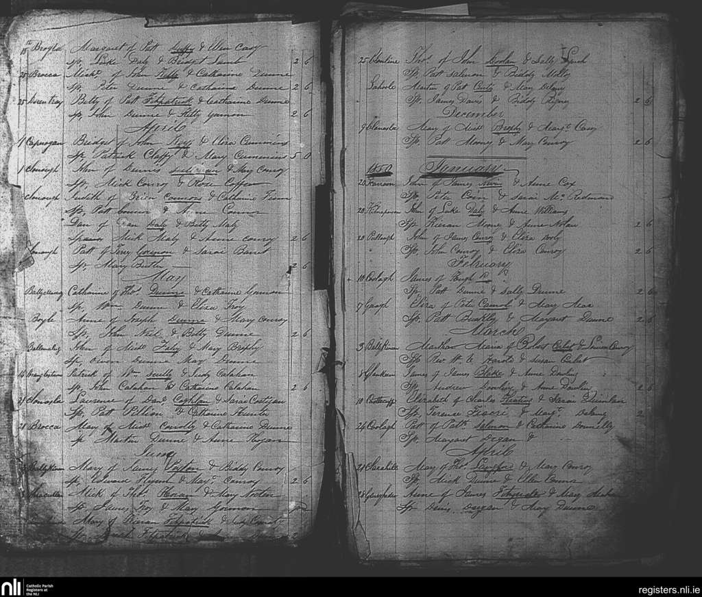 Clonaslee; County of Laois; Diocese of Kildare and Leighlin. Baptisms, Mar. 1849 to Apr. 1850