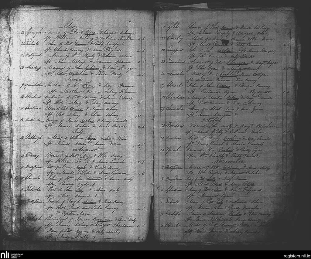 Clonaslee; County of Laois; Diocese of Kildare and Leighlin. Baptisms, May 1850 to Nov. 1850