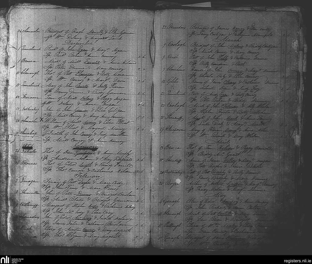 Clonaslee; County of Laois; Diocese of Kildare and Leighlin. Baptisms, Nov. 1850 to May 1851