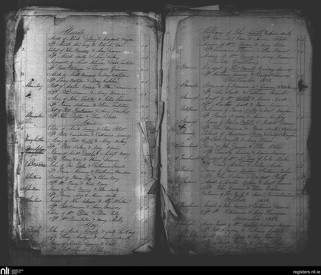 Clonaslee; County of Laois; Diocese of Kildare and Leighlin. Baptisms, Mar. 1856 to Nov. 1856